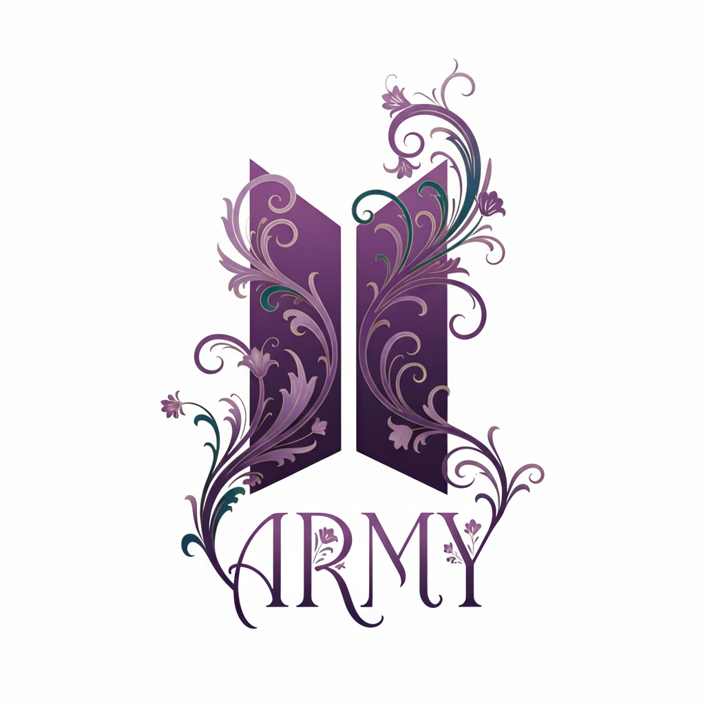 The daily sequence of events often begins with the preparation of a beverage. For many, this moment is a foundation for the day ahead. The vessel chosen for this purpose serves a functional role, but it also reflects the interests and membership of the individual. This stoneware item features a decorative version of the official emblem of the global fandom associated with the South Korean group. The design presents the trapezoidal shapes and the word "ARMY" entwined with elegant purple floral patterns against a clean white exterior. This combination provides a sophisticated look that is easily recognizable.