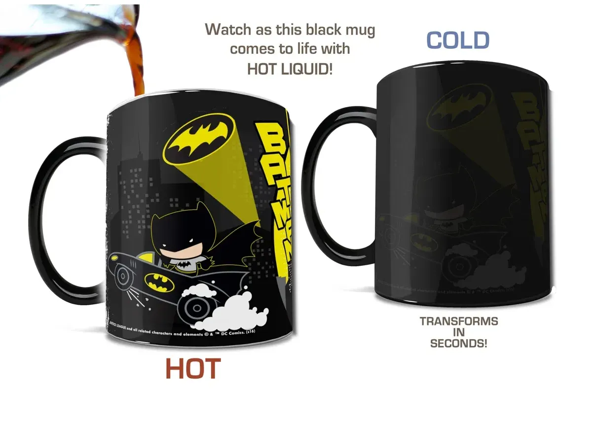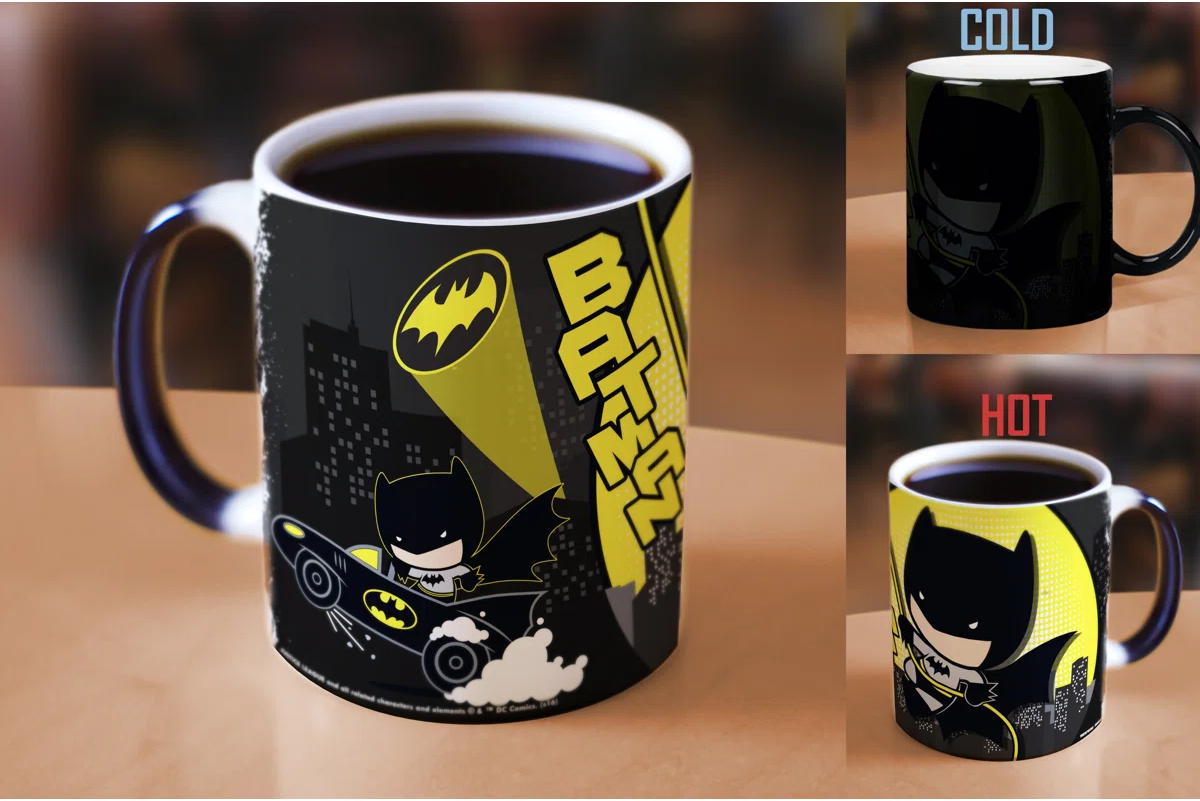 Navigating the transition from rest to action in 2026 requires a reliable vessel for your morning routine. This Batman Morphing Heat Changing Coffee Mug offers a combination of utility and energetic, stylized artistry inspired by the Justice League. Featuring a character in a signature armored vehicle against a Gotham-inspired skyline, the piece serves as a functional addition for those who appreciate the modern, graphic-novel aesthetic. The construction focuses on a classic cylindrical silhouette with high-contrast yellow and black branding, making it a visible and practical choice for regular interaction in any environment.
