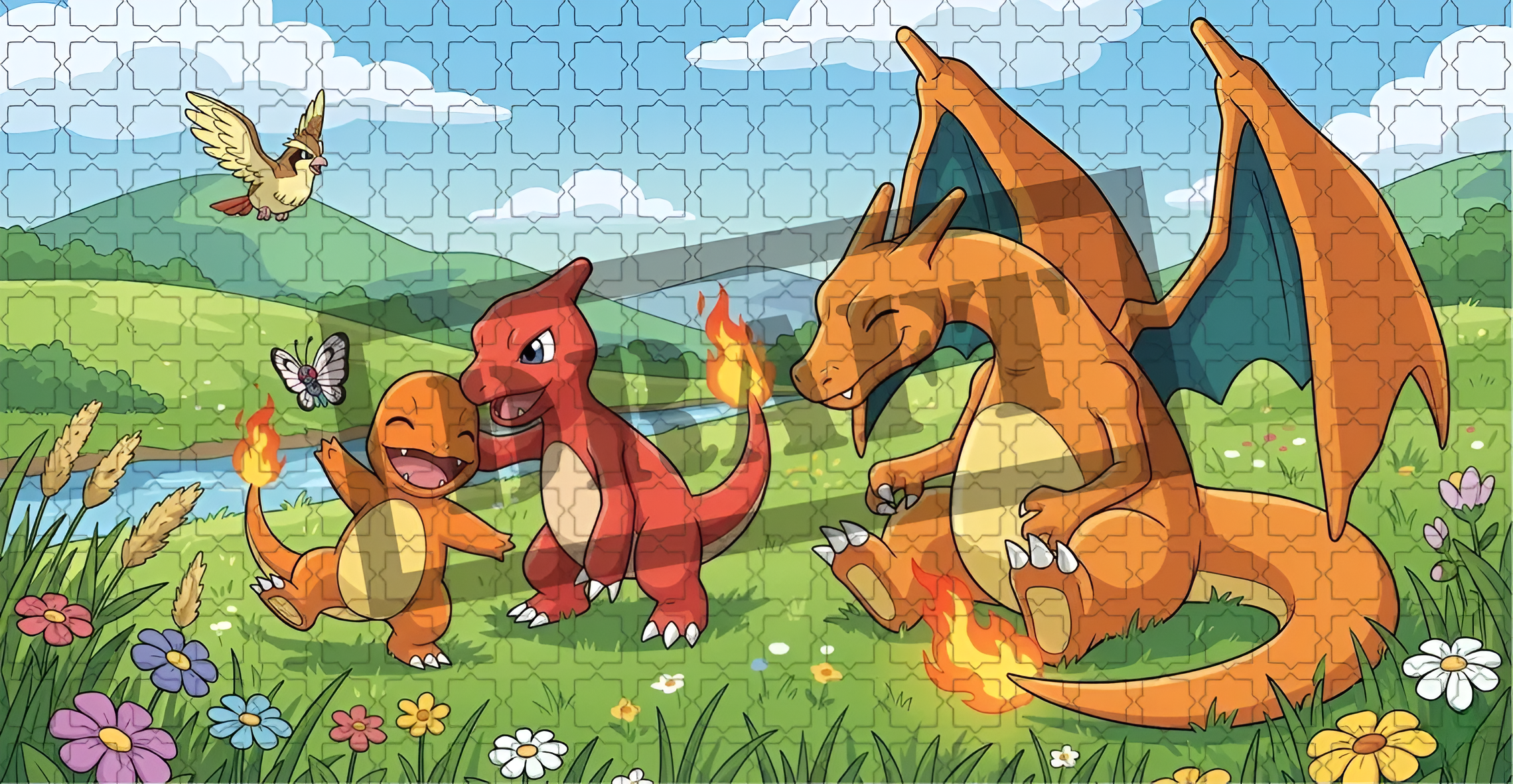 - Full-Wrap Character Graphic: Showcases a clear illustration of the three evolution stages in one continuous landscape scene.